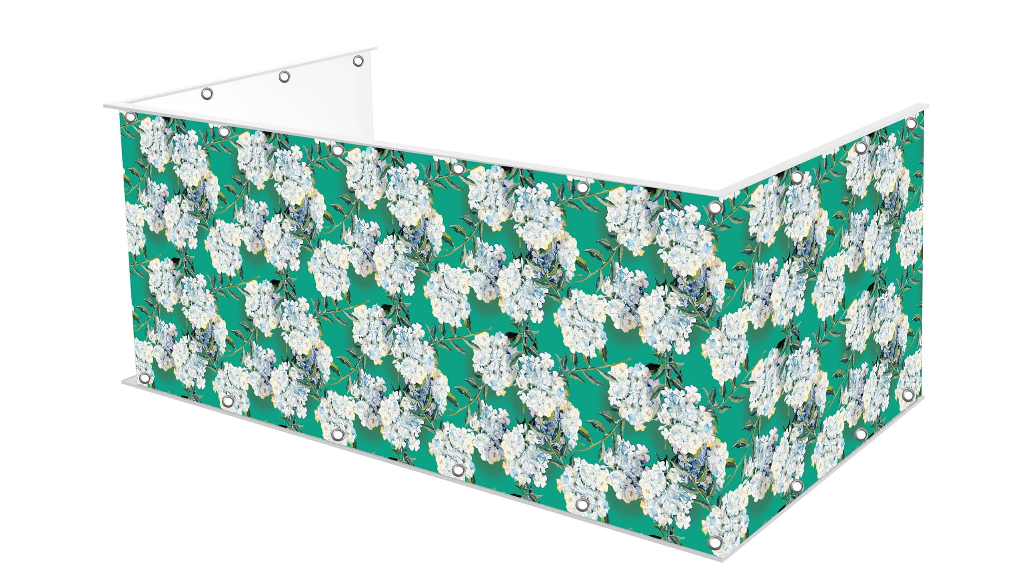 Osłona balkonu wykonana na matowym banerowym materiale o gramaturze 510g.