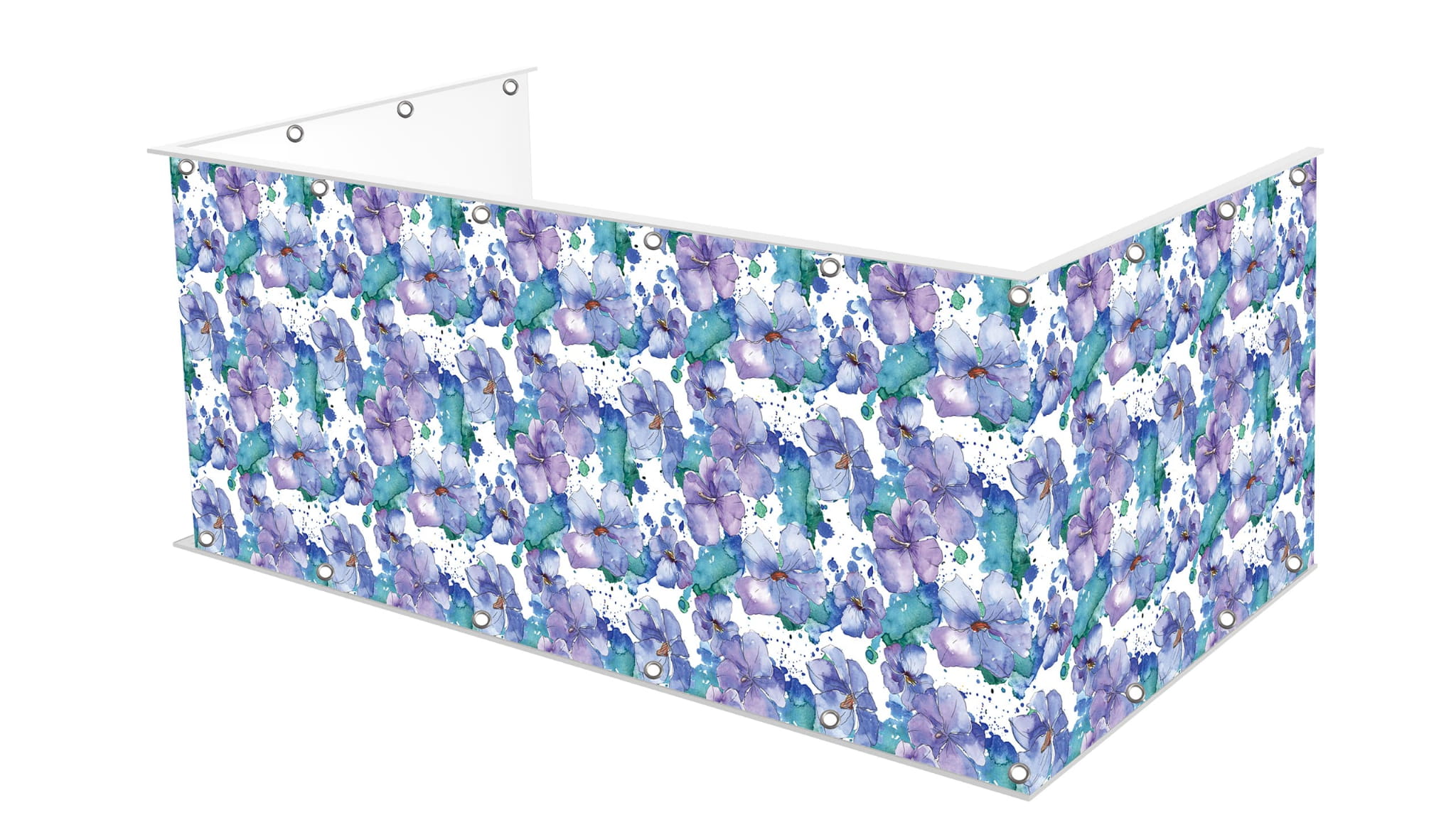 Osłona balkonu wykonana na matowym banerowym materiale o gramaturze 510g.