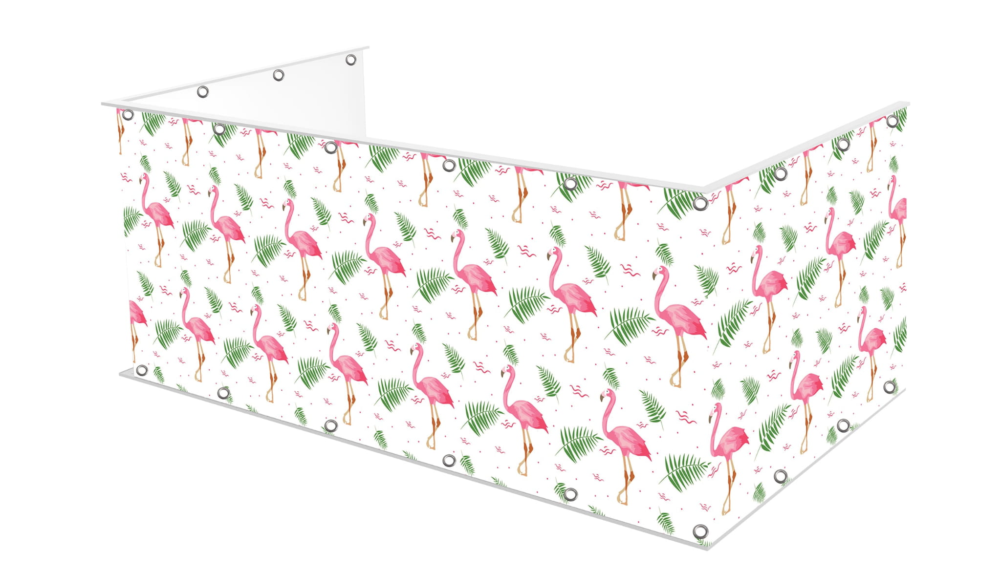 Osłona balkonu wykonana na matowym banerowym materiale o gramaturze 510g.