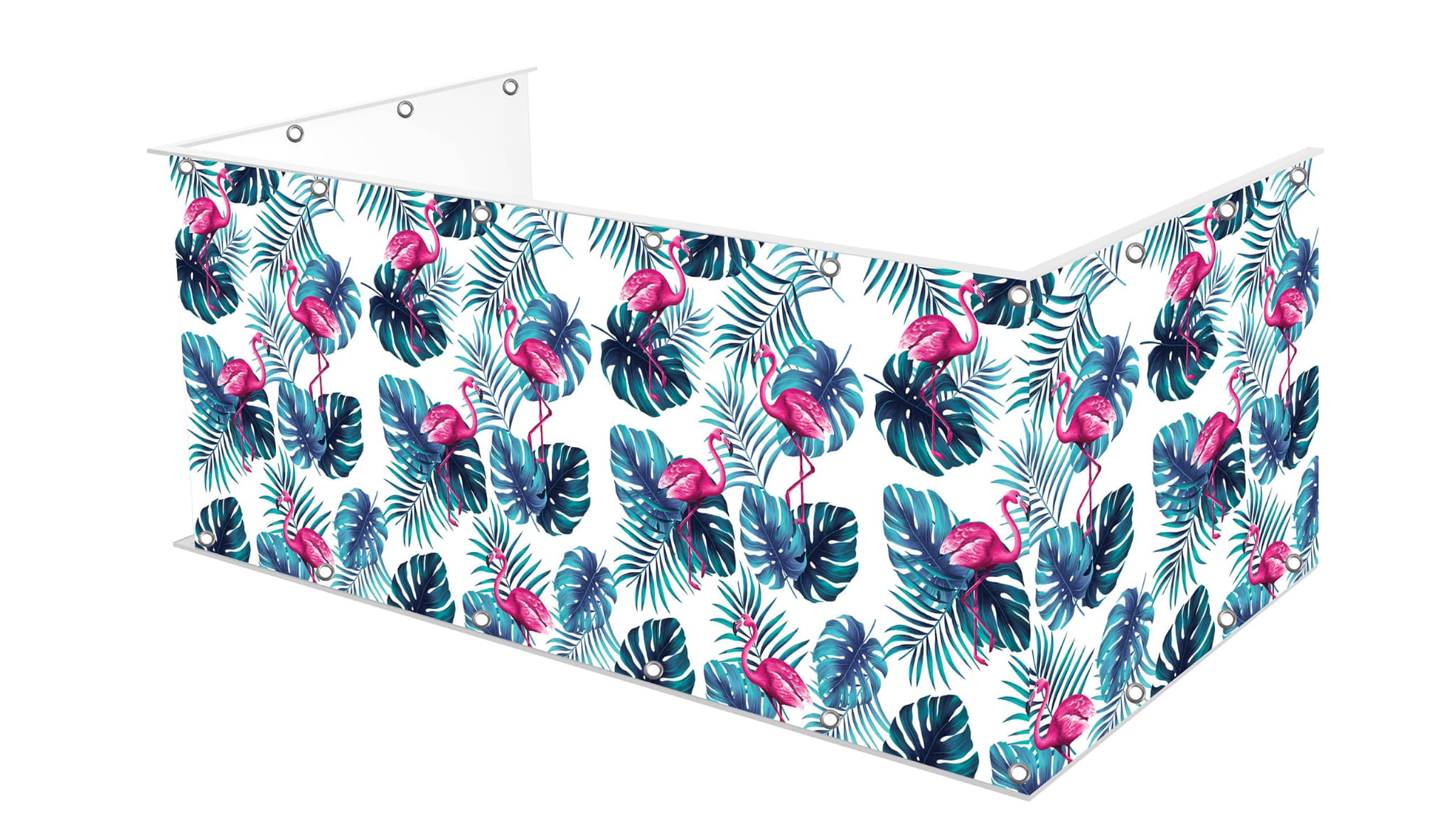 Osłona balkonu wykonana na matowym banerowym materiale o gramaturze 510g.