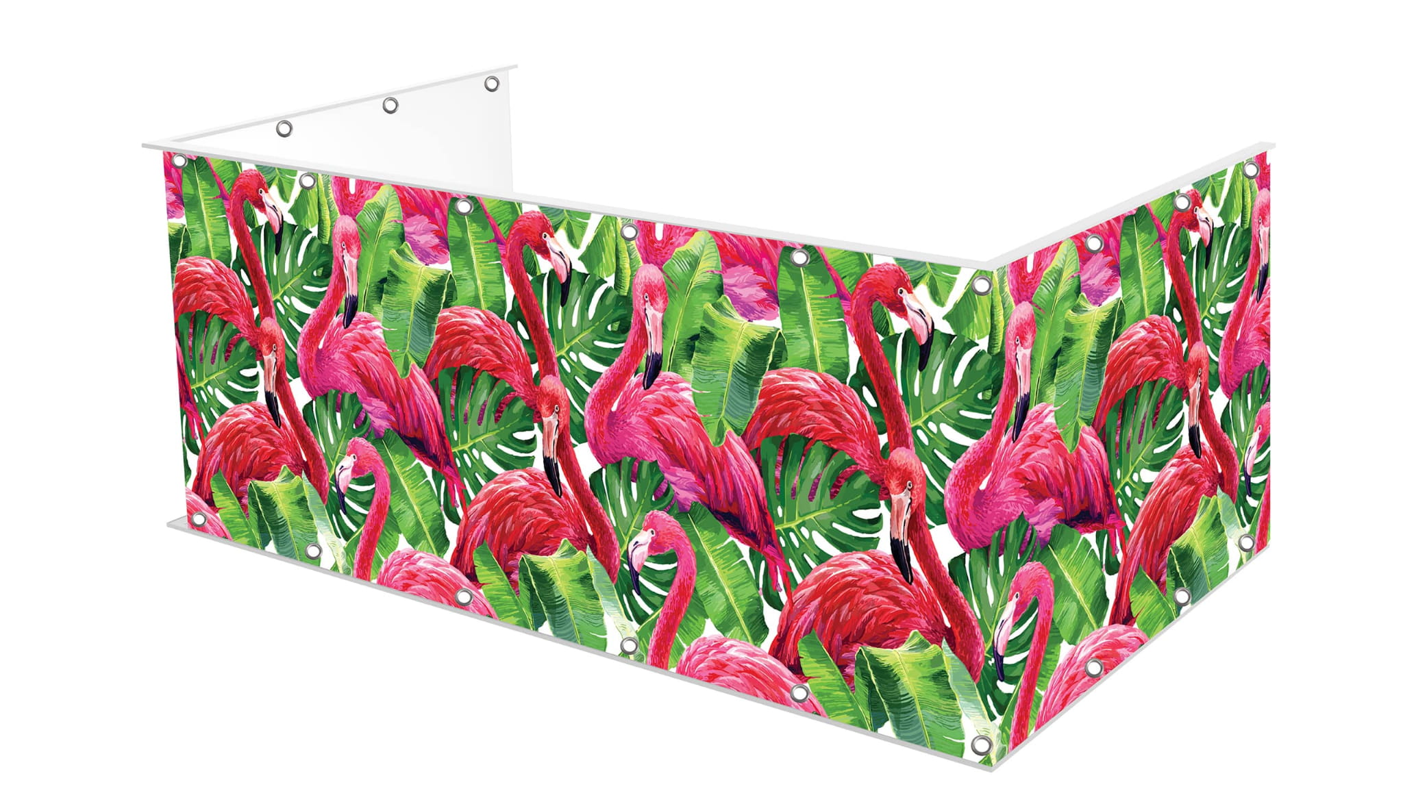 Osłona balkonu wykonana na matowym banerowym materiale o gramaturze 510g.