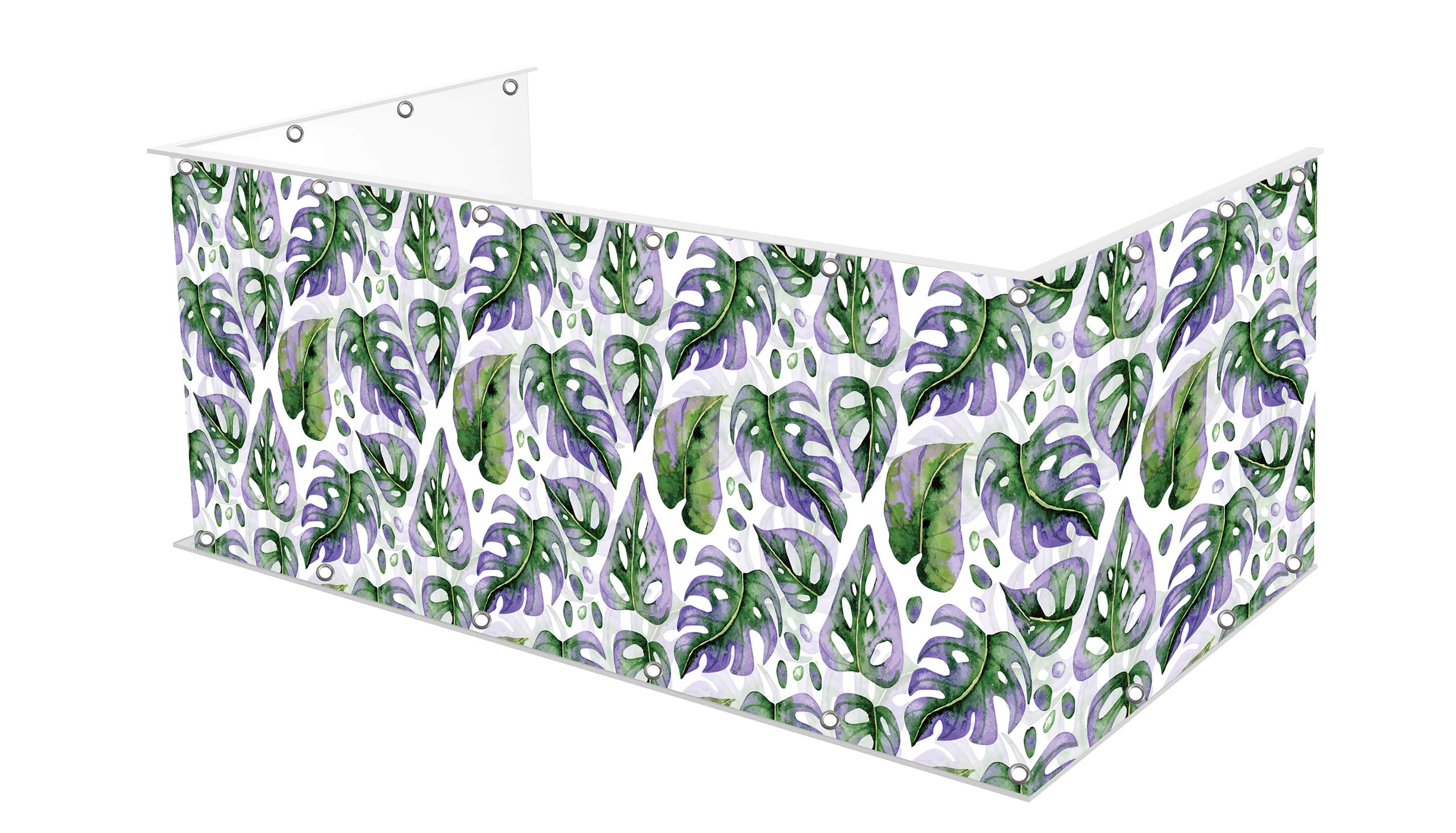 Osłona balkonu wykonana na matowym banerowym materiale o gramaturze 510g.