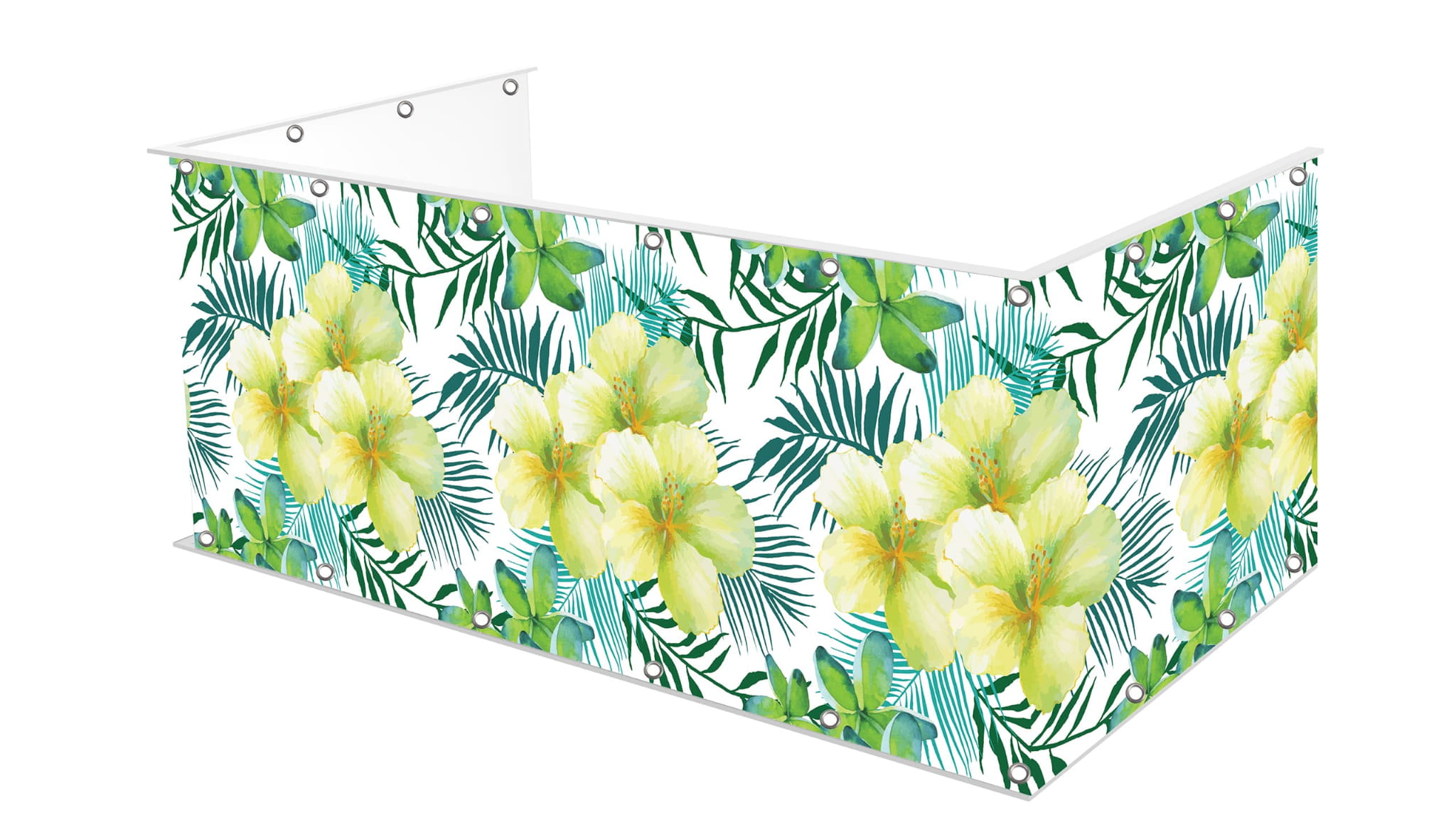 Osłona balkonu wykonana na matowym banerowym materiale o gramaturze 510g.