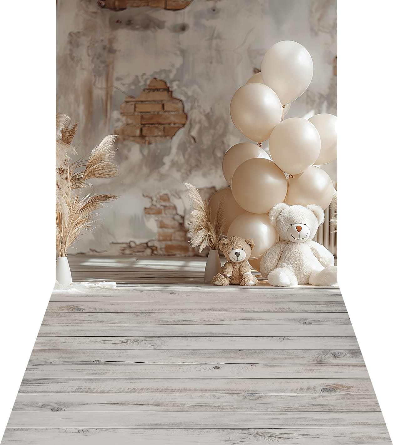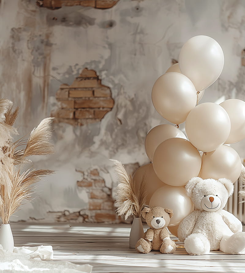 tło fotograficzne w stylu boho z misiami, wykonane na matowym winylu, lub na tkaninie, do fotografii noworodkowej, dziecięcej lub produktowej