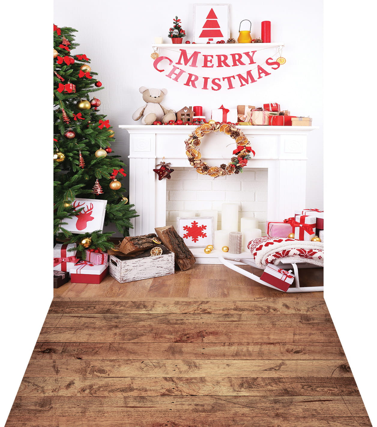 Świąteczne, zimowe, winylowe grube tło fotograficzne, wykonane na matowym winylu, do fotografii noworodkowej lub dziecięcej.