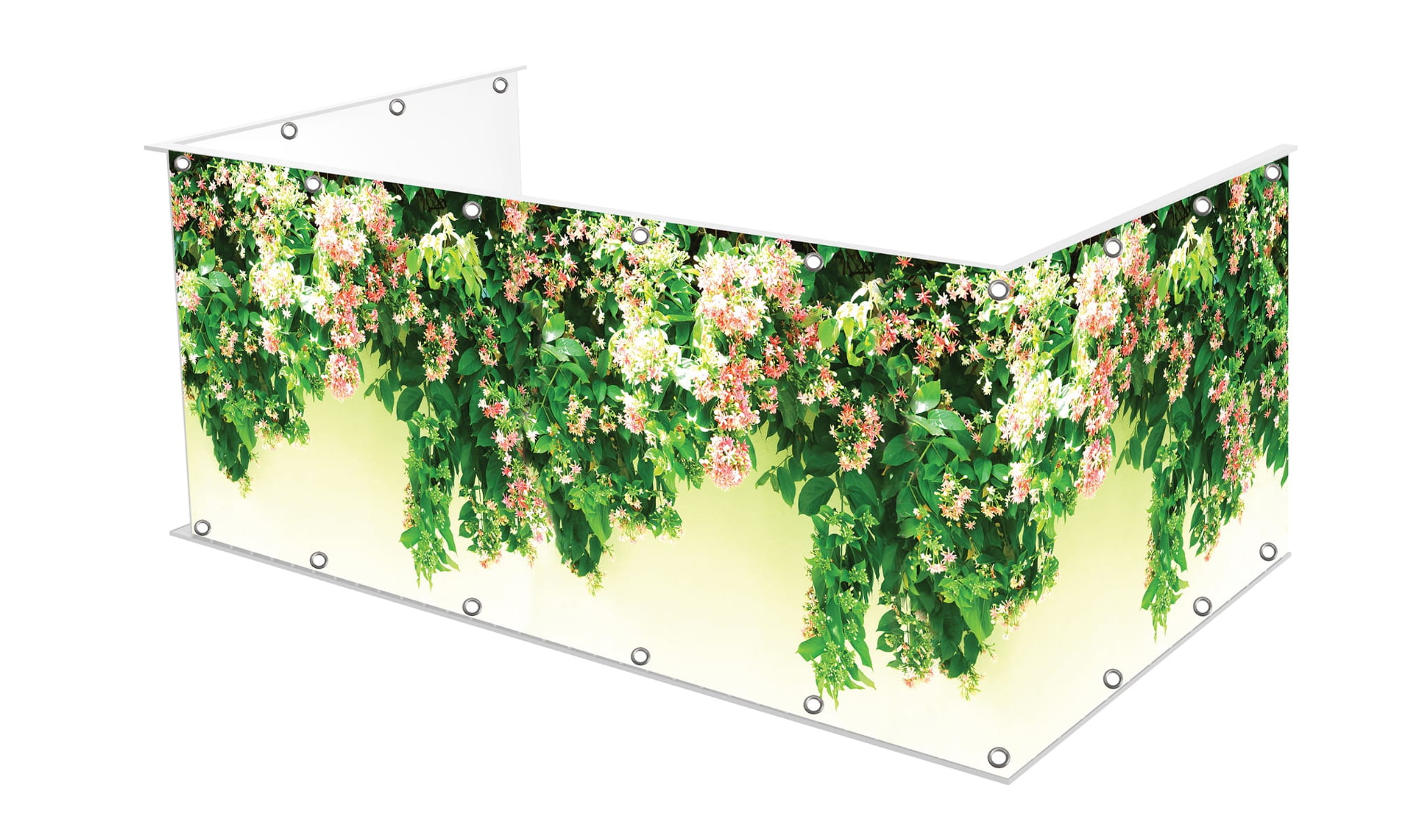 Osłona balkonu wykonana na matowym banerowym materiale o gramaturze 510g.