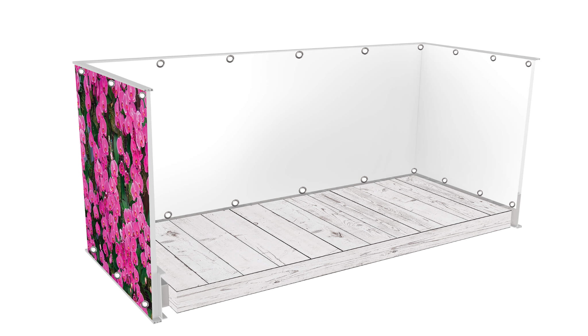 Matę balkonową możemy wykonać o dowolnej długości i wysokości maksymalnej do 100 cm, lub do 130cm, w zależności od wybranego wariantu.