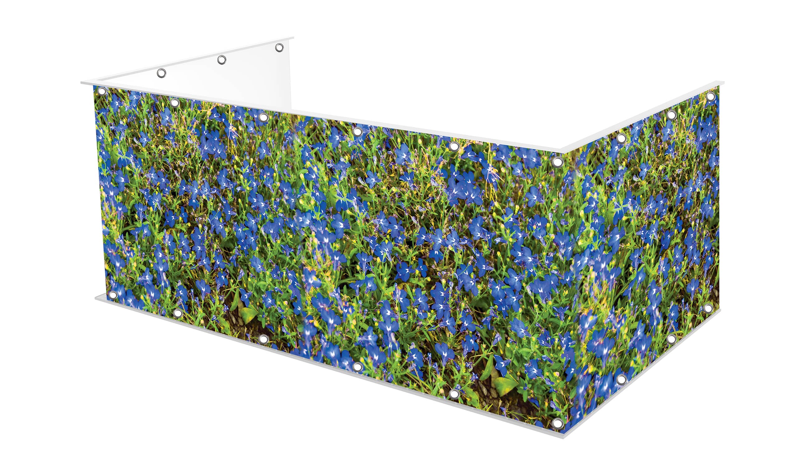 Osłona balkonu wykonana na matowym banerowym materiale o gramaturze 510g.