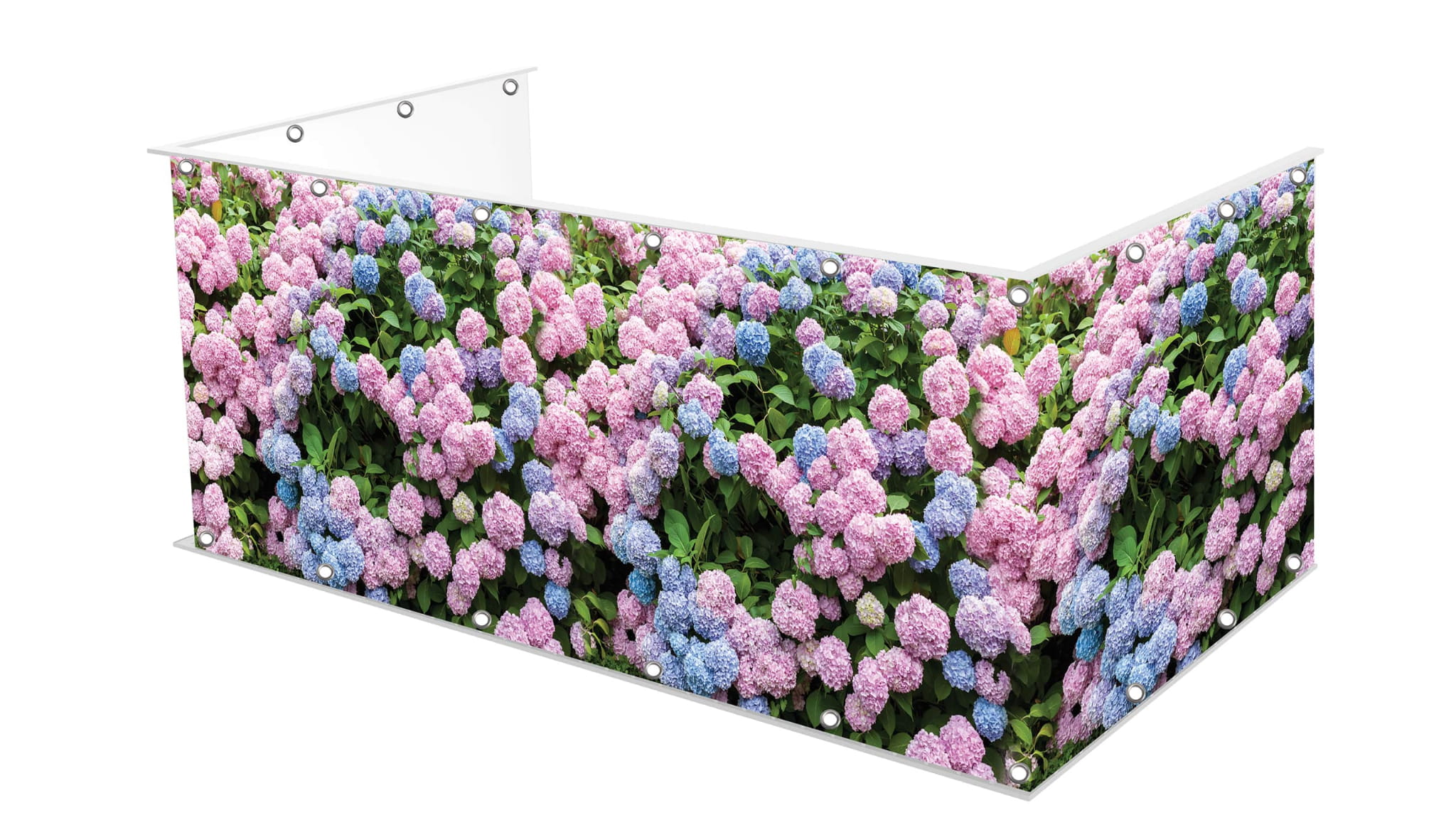 Osłona balkonu wykonana na matowym banerowym materiale o gramaturze 510g.