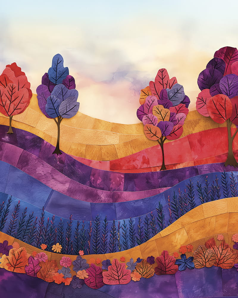 Dzięki ciepłym, tonom, to wyjątkowe tło jesienne, doskonale oddaje radosną atmosferę dzieciństwa.