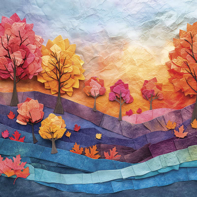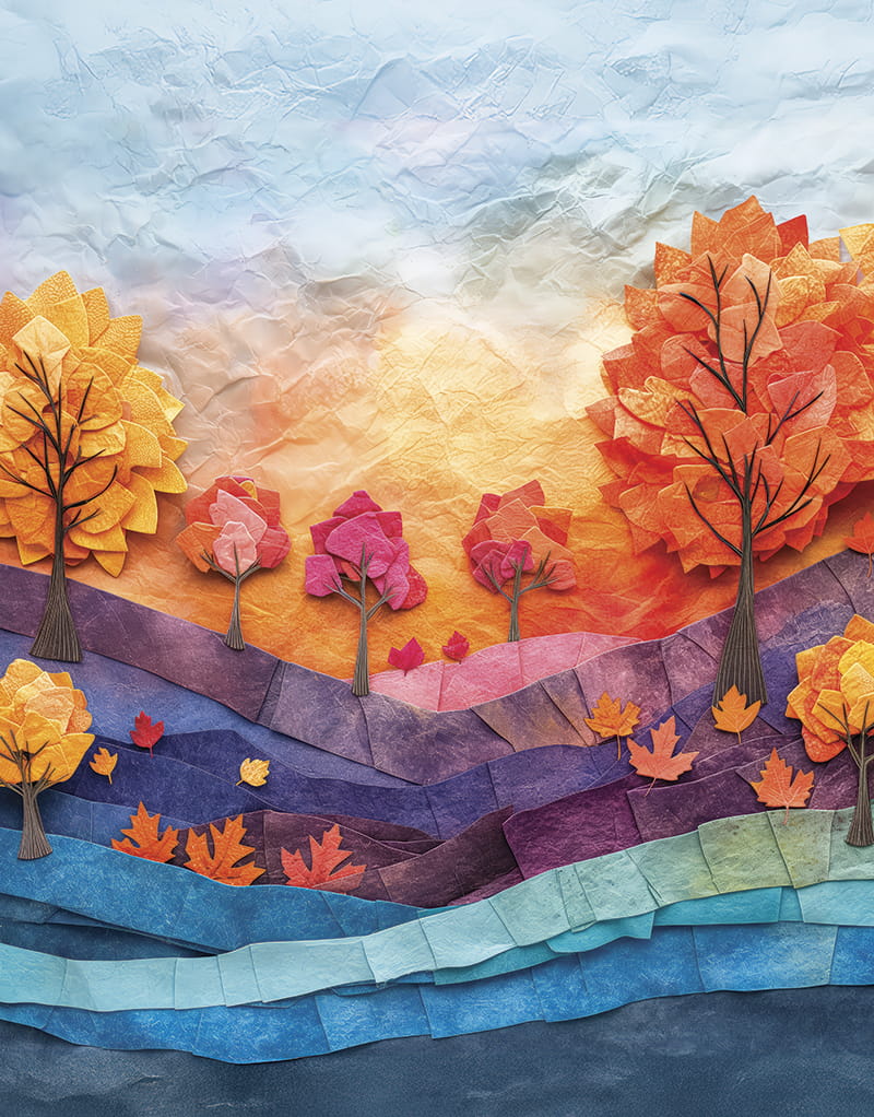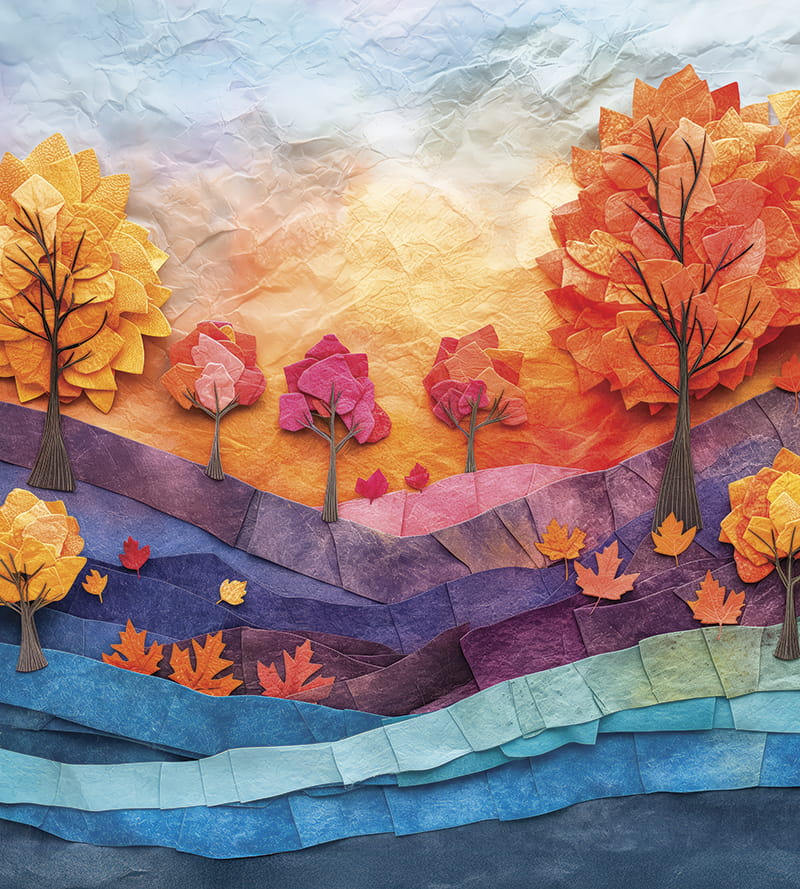 Dzięki ciepłym, tonom, to wyjątkowe tło jesienne, doskonale oddaje radosną atmosferę dzieciństwa.