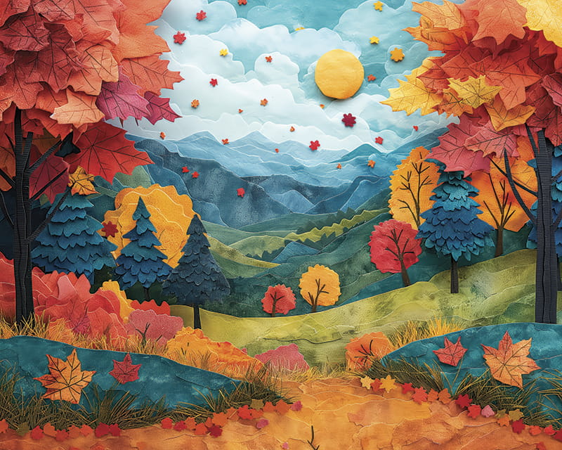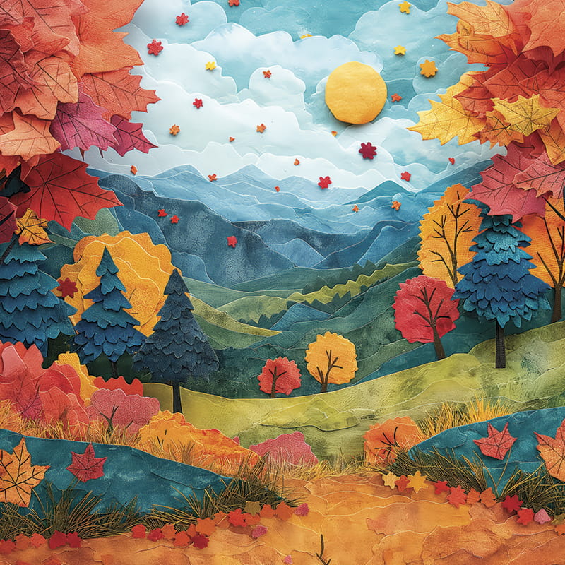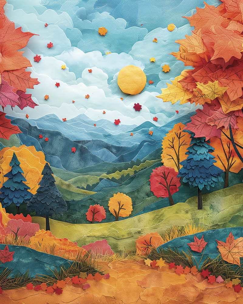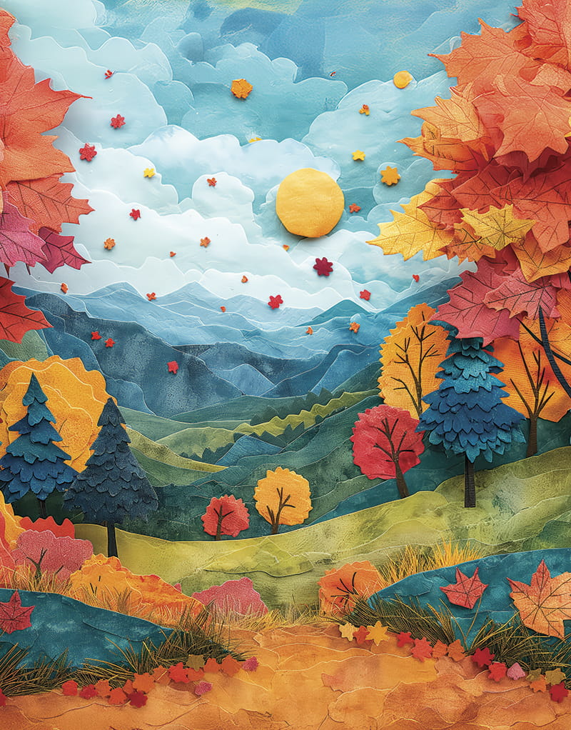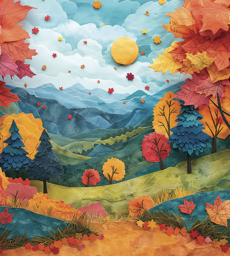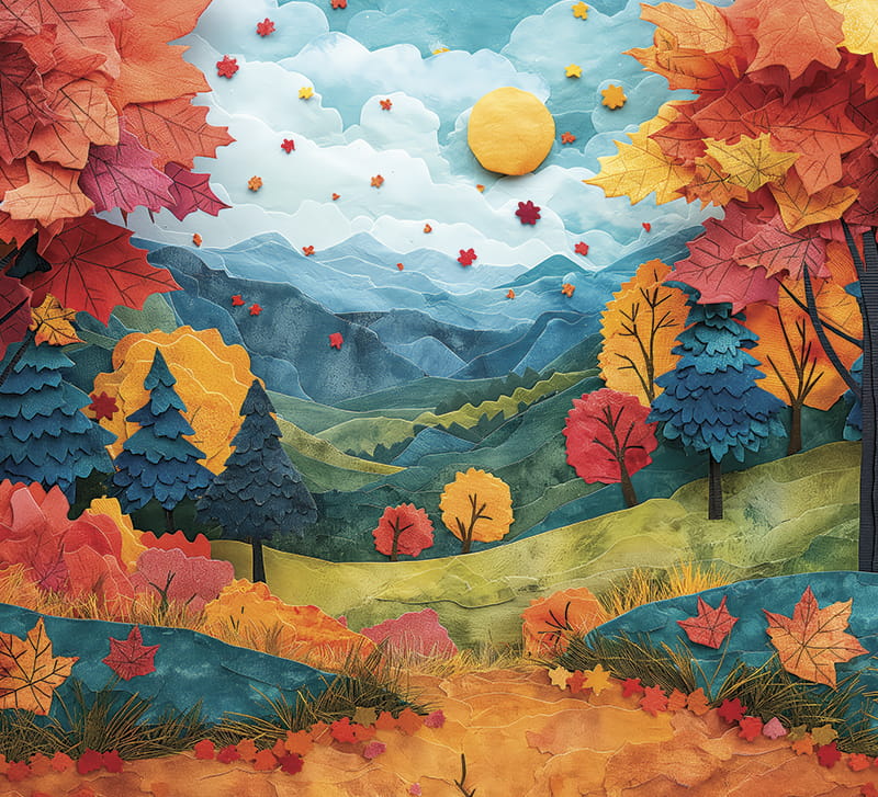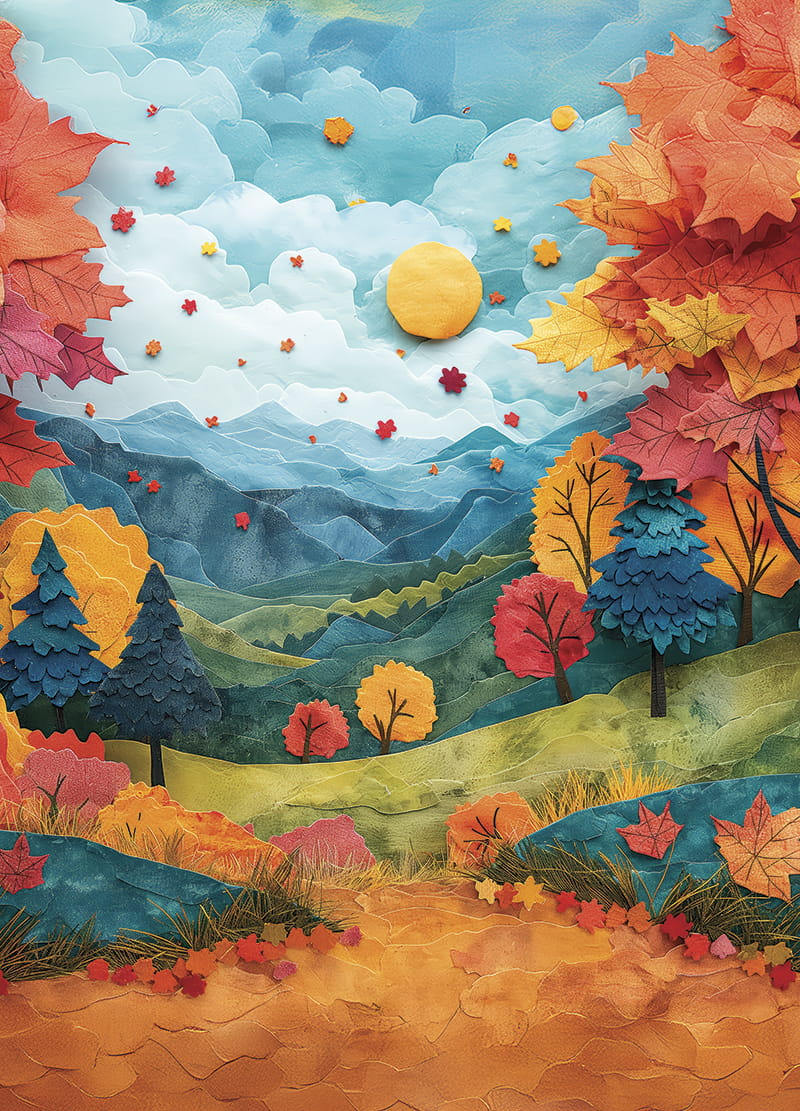 Dzięki ciepłym, tonom, to wyjątkowe tło jesienne, doskonale oddaje radosną atmosferę dzieciństwa.