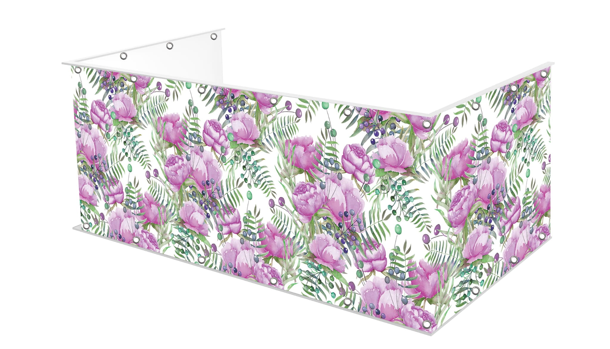 Osłona balkonu wykonana na matowym banerowym materiale o gramaturze 510g.