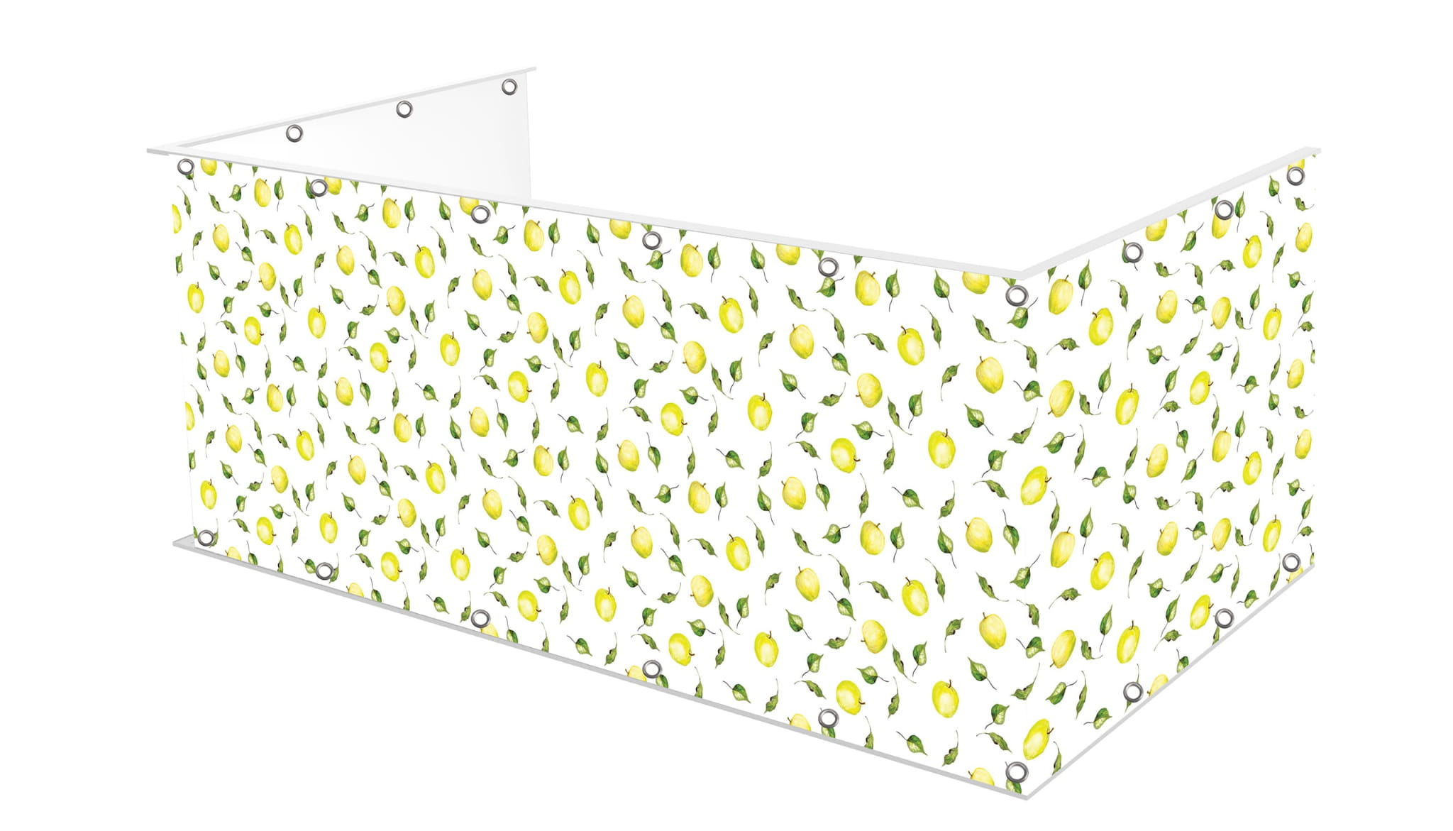 Osłona balkonu wykonana na matowym banerowym materiale o gramaturze 510g.