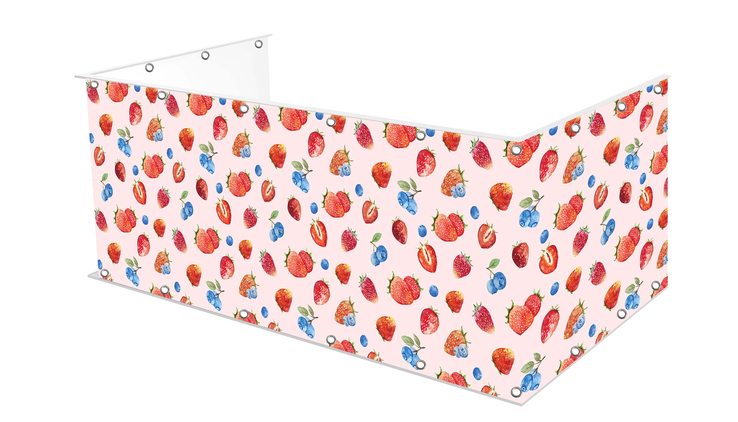 Osłona balkonu wykonana na matowym banerowym materiale o gramaturze 510g.