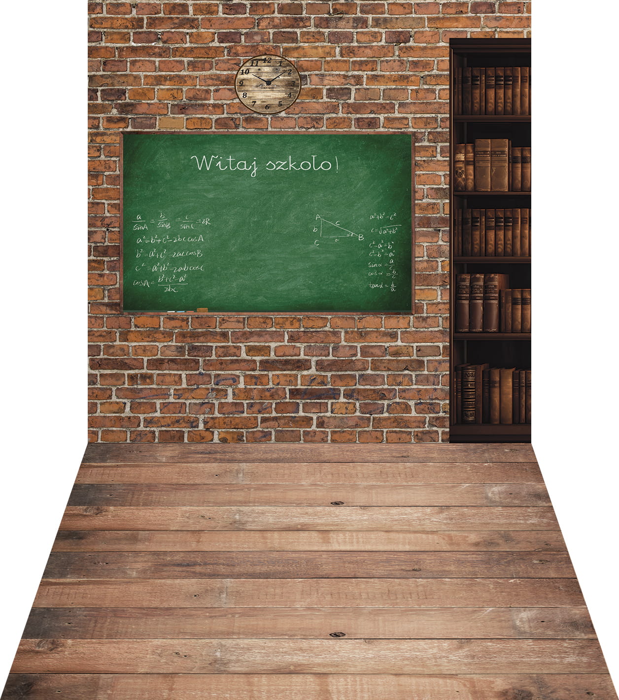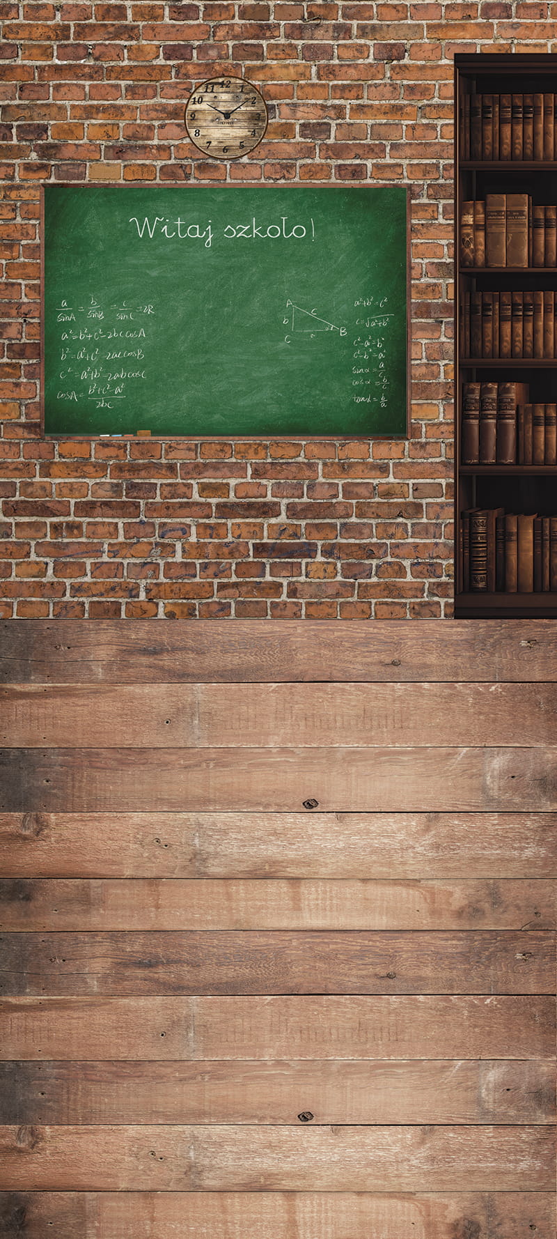 Klasyczne winylowe, grube tło fotograficzne, wykonane na matowym winylu, lub grubej tkaninie, przeznaczone do fotografii szkolnej, z okazji rozpoczęcia roku szkolnego.